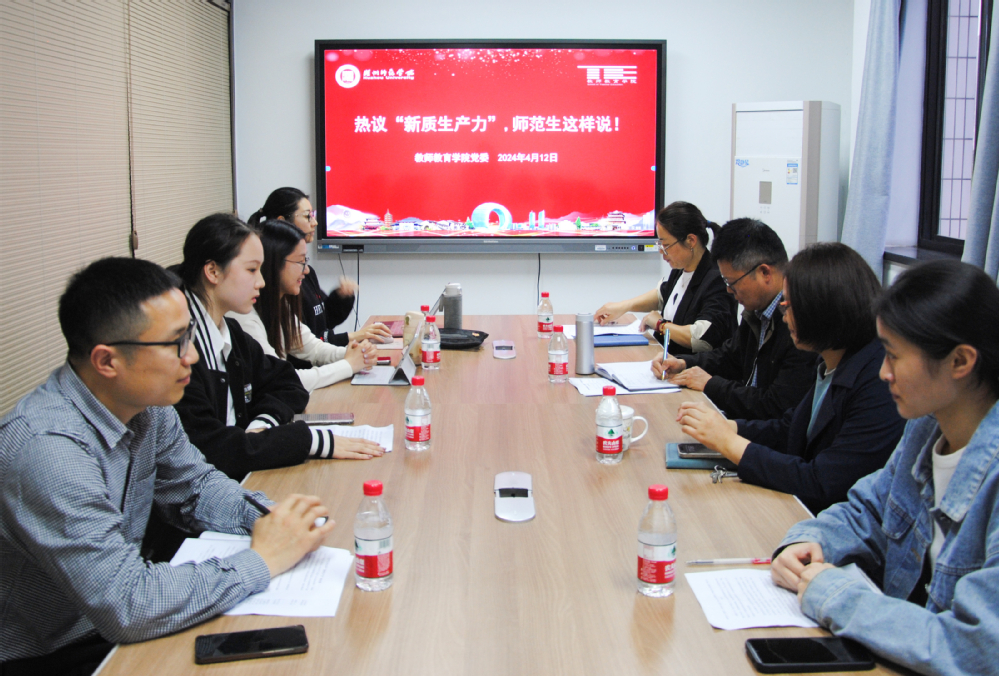 4月12日,教师教育学院组织召开师生座谈会,围绕发展新质生产力,广泛开展学习和热议。学院党委副书记沈卫主持并带领大家重温习近平总书记关于新质生产力的重要论述。学院党委书记沈江龙,党委委员、小学教育学系主任王燕红,全体辅导员和学生代表参加学习热议活动。
