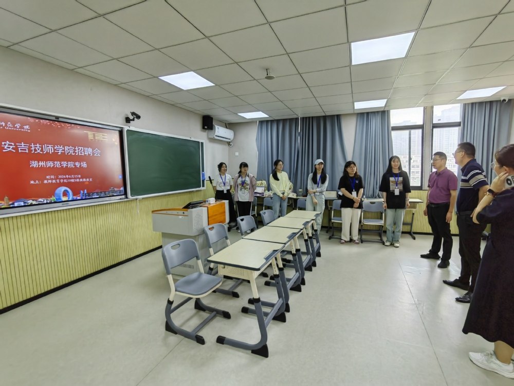 为进一步落实学院2024届毕业生就业工作,开展小而精、专而优的专场招聘活动,学院于6月15日上午8:30在10幢5楼微格教室举办安吉技师学院专场招聘活动。本次招聘活动由安吉技师学院党委书记、院长姚池泉,党委委员、副院长高慧芬带队,我院党委书记沈江龙,党委副书记沈卫到场交流。
