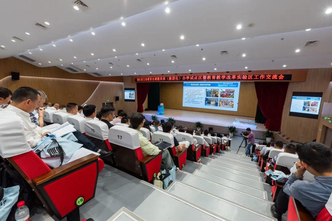 在义务教育全域教共体(集团化)办学试点工作交流活动阶段,乐清市相关负责人介绍了全域教共体(集团化)办学试点工作典型经验以及学校教共体实践。随后,杭州市上城区、浦江县、杭州市临平区、衢州市柯城区、海盐县、永康市六个县(市、区)代表依次就全域教共体(集团化)办学试点工作展开交流。天台县作了有关工作交流。在义务教育教学改革实验工作交流阶段,全国义务教育教学改革实验区代表杭州市西湖区、嘉兴市南湖区,全国义务教育教学改革实验校代表宁波市北仑区顾国和外国语学校,省义务教育教学改革实验区代表舟山市普陀区分别作交流发言。