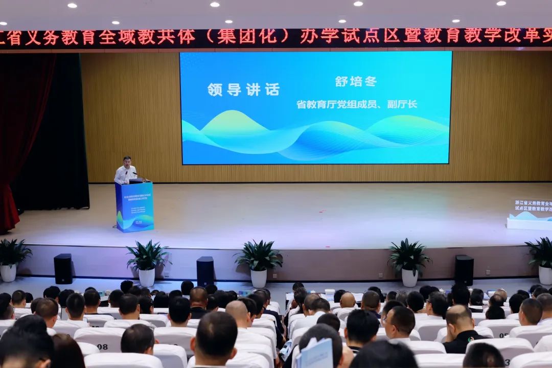 会上,舒培冬强调,推进义务教育全域教共体(集团化)办学试点区和教育教学改革实验区工作责任重大,各试点区、试点学校既要牢牢守住平稳趋势、平安底线,确保改革有序进行,又要勇攀高峰,争做教育改革创新的排头兵,以更扎实举措推动改革向纵深发展。他强调,要进一步提高认识,增强试点实验工作的使命感和责任感,认识到推进全域教共体(集团化)办学和义务教育教学改革实验区、实验校建设是构建优质均衡的公共服务体系的必答题,也是推进基础教育扩优提质、构建高质量基础教育体系的内在要求;要进一步聚焦改革实验的重点和任务,立足浙江优势,从省《试点方案》中提出的四项全域教共体(集团化)办学改革重点任务及教育部对教育教学改革实验区明确的七大重点任务入手,着力缩小城乡差距、不断提升教育教学整体质量与水平;要进一步做好协同的文章,加强教共体集团与联盟内部、教育系统内部、教育部门与其他部门以及家校社的协同与联动,做好资源整合、争取支持、增强保障等工作,促进试点实验工作的有序开展;要进一步落实落细教育教学改革,重点做好持续巩固“双减”成效、优化中小学课间活动安排、持续推进教育教学评价改革、规范办学、深入实施基础教育“规范管理年”行动等工作,务求取得实效,以更扎实举措、更管用招数擦亮“浙里优学”“教育共富”的金名片。