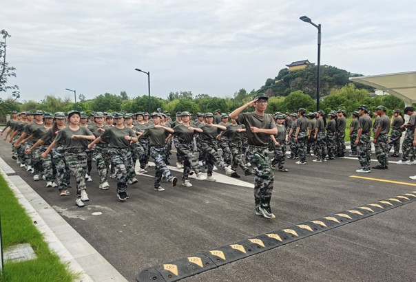 训练科目设置丰富多元,兼具教育意义与学院特色。除常规军事训练外,消防演练提升了学生的安全素养与责任意识,拔河比赛等集体活动则有效强化了团队凝聚力。由本院学子组成的匕首操方队,更是以整齐划一的动作、昂扬奋进的气势,成为汇报现场一道亮丽的风景线。