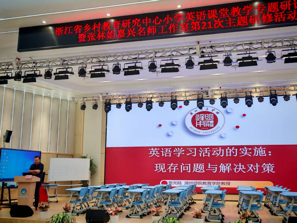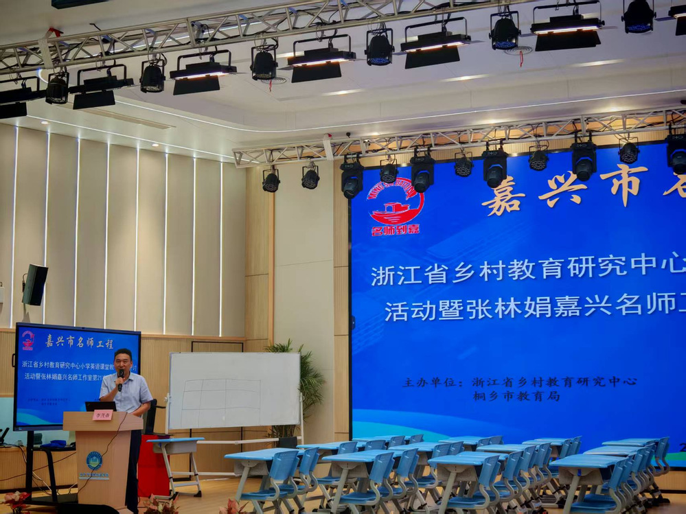 为进一步推动乡村学校课堂变革,更好落实学科核心素养,助力乡村教育高质量发展,2025109日由浙江省乡村教育研究中心(以下简称研究中心)主办的小学英语课堂教学专题研讨活动在桐乡市濮院桐星学校举行。研究中心常务副主任、湖州师范学院教育学院执行院长李茂森,研究中心副主任、湖州师范学院教育学院教授张光陆,湖州师范学院秦启光博士,桐乡市小学英语教研员凌应强老师、张林娟嘉兴名师工作室全体成员、桐乡市各实验小学的英语骨干教师代表以及湖州师范学院学科教学英语专业的部分研究生参加了本次活动。
