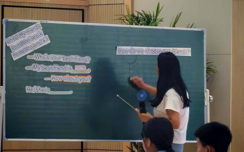 陈晓梅老师围“朋友”这一主题,以“What makes a good friend?”为主线,通过视频导入、情境对话、任务操练等方式,引导学生在真实的语境中运用语言。课堂中注重学生情感体验与语交际能力的融合,通过听、说、读、演等多种活动,提升学生的综合用能力。
