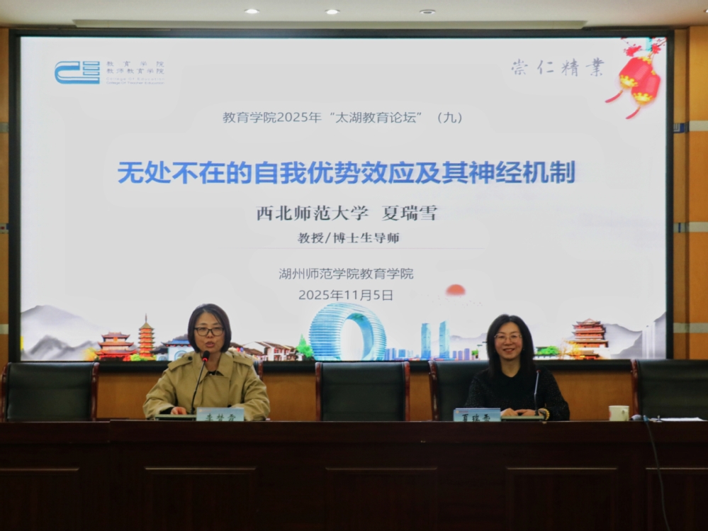 为了深化学生对自我认知前沿领域的理解,搭建知识共享的学术平台。2025年11月5日,教育学院邀请西北师范大学夏瑞雪教授做题为“无处不在的自我优势效应及其神经机制”的专题讲座。讲座由我院副院长李梦霞主持,学院部分教师及研究生参加。