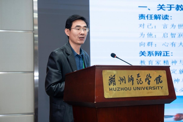 湖州师范学院教育学院(教师教育学院)执行院长李茂森宣读征文获奖名单并为其颁奖,由浙江师范大学硕士研究生吴梦莹和西北师范大学博士研究生欧阳小宇为获奖代表发言