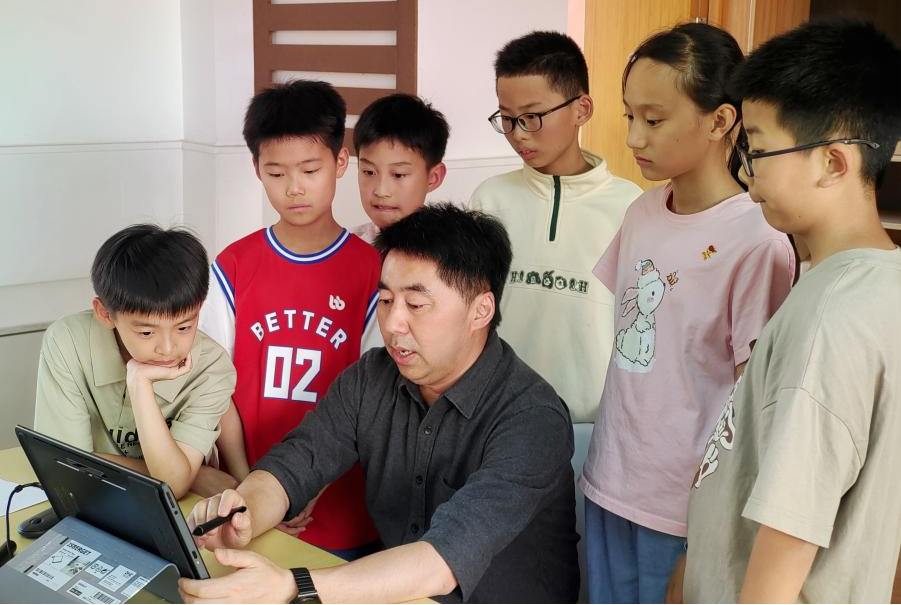 在同事周惜蓓眼中,陈勇不仅是小学美术学科的“大咖”,还是一个能全学科引领教师发展的“大神”。他热爱美术,却一直努力跳出学科看美育;他学习传统艺术,却总是学校第一个尝试新工具、学会新技术的教师;他借助移动终端设备开展课堂教学尝试,领衔设计数字化美术教室。