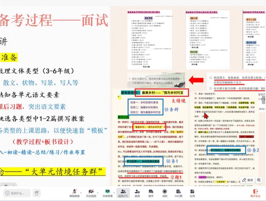 在试讲与说课能力提升方面,分享会提供了从宏观理念到微观实操的全方位指导。研究生们就教案设计的创新性、教学环节的完整性、课堂互动的有效性以及临场发挥的稳定性等关键维度分享了心得。他们建议,备考阶段应深入研读课程标准与教材,充分利用中国知网学术资源、国家级精品课程等优质平台汲取前沿教学理念,积极融入“大单元教学”、“学习任务群”等新课改思想。分享会以具体篇目为例,演示了如何精巧设计课堂导入、搭建教学逻辑链条、组织学生探究活动。同时,对于试讲说课的时间精准把控(如7分钟试讲中各部分的时间分配)、通过录像进行自我复盘反思、以及面试着装与礼仪等细节,也给予了贴心提示。