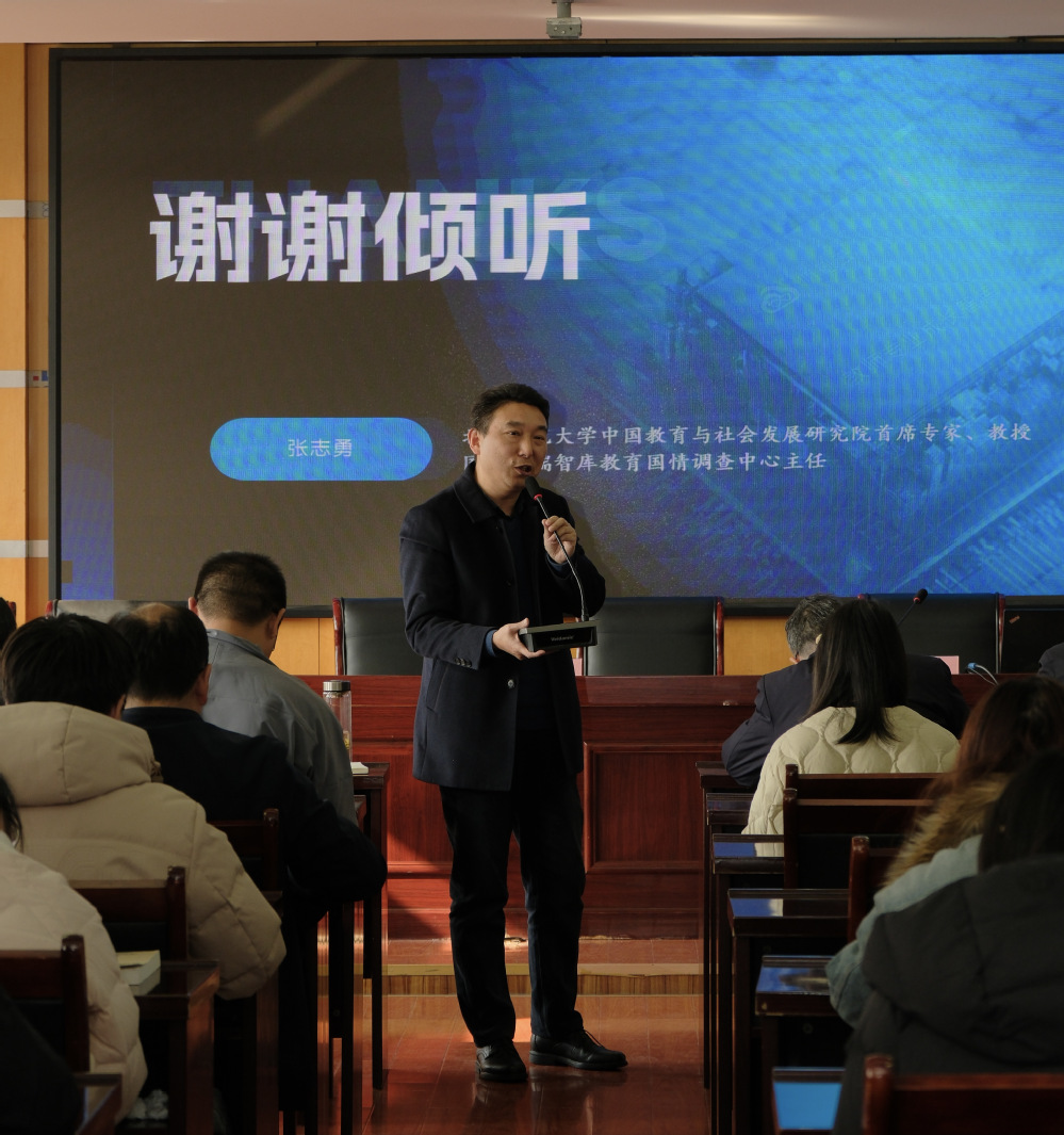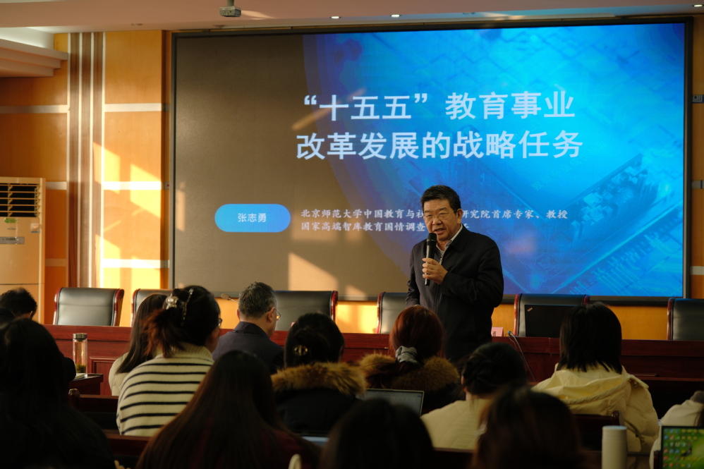 为精准把握“十五五”教育强国建设核心方向,破解当前教育改革发展中的关键难题,助力我院师生明晰新时代教育发展战略任务,1月16日,学院特邀北京师范大学中国教育与社会发展研究院首席专家、国家高端智库教育国情调查中心主任、博士生导师张志勇教授,作题为“十五五时期我国教育发展所处方位、指导思想与战略任务”的专题讲座。本次讲座由我院执行院长李茂森主持,学院部分教师及研究生参加。