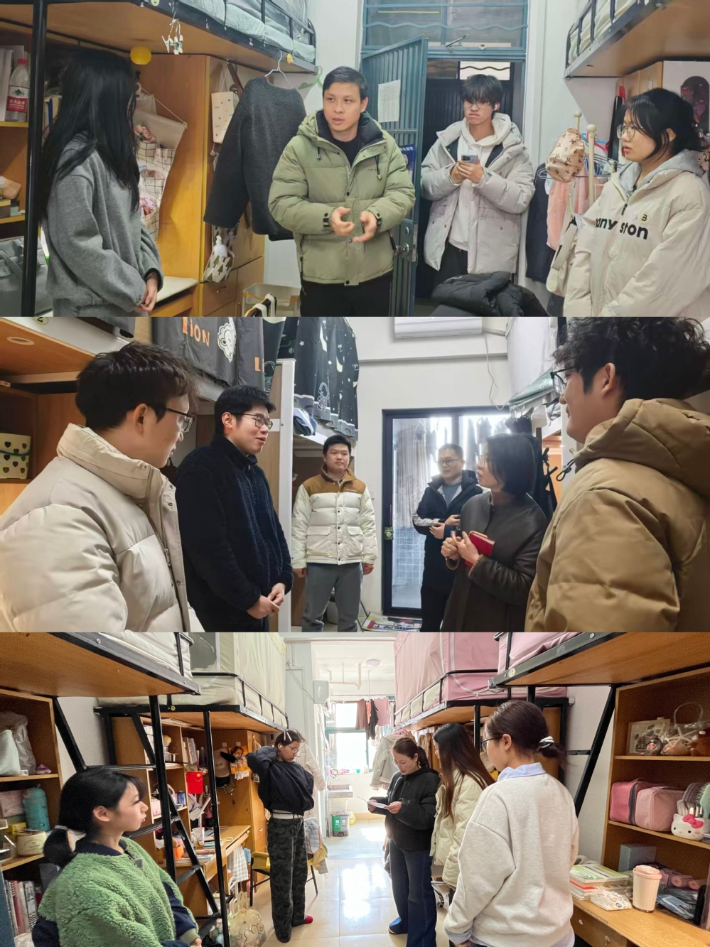 走访期间,老师们与学生亲切交流,倾听住宿相关诉求与建议,解答安全管理疑问,强调学生是自身安全第一责任人,引导大家自觉遵守校规校纪,共同打造安全文明的宿舍环境。同学们纷纷表示,将严格遵守宿舍管理规定,主动提升安全意识,共同守护校园平安。