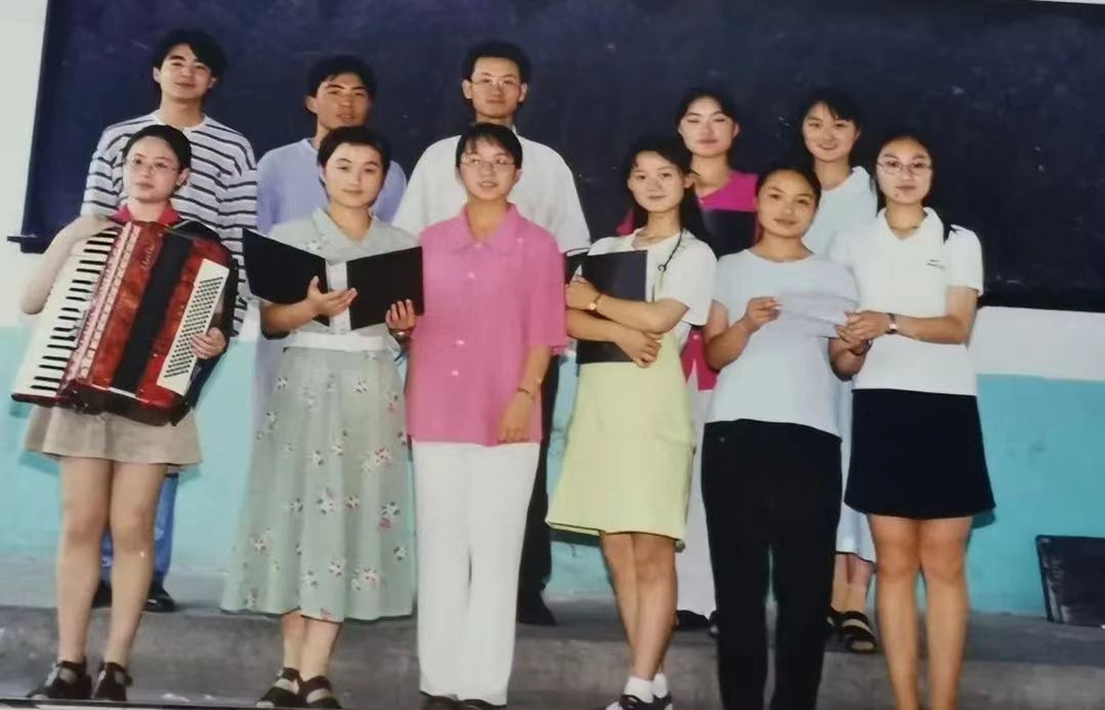 荏苒岁月颓,此心未曾远。时间飞逝如白驹过隙,二十几载春秋悄然从指缝中溜走,然而回望来时路,对于音乐的热爱从未消退。1995年,怀抱着对未来的憧憬,从小喜爱音乐、学习乐器的张雁南背着手风琴参加了湖州师范学院的考试,并成功进入湖州师范学院音师班,从此拨动了人生中音乐教育事业的齿轮。“有当音乐老师的机会,我很开心,而且能够一直从事自己喜欢的职业,我感觉很幸福。”在知了热烈的奏响曲中,张雁南迎着清风步入湖州师范学院的大门,在音乐的陪伴里逐渐成长为一名优秀的人民教师。