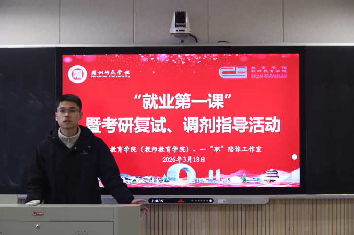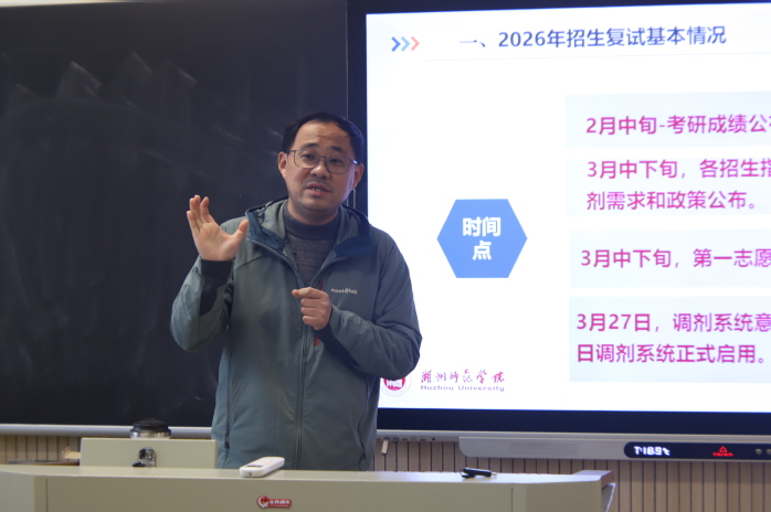 活动伊始,由学院钱乾老师作专题讲解。钱老师结合近年来教育学院及同类院校的考研数据,系统梳理了复试与调剂的核心流程,深入解读了复试考核重点、调剂政策变化、院校选择策略以及信息获取渠道等内容,帮助同学们厘清备考思路,搭建清晰的备考框架。