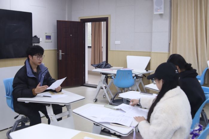 为增强实战感,活动特别设置了模拟面试演练环节。考生们被随机分为三组,每组由学生干部担任模拟面试官,按照真实面试流程进行自我介绍、专业问答和综合提问。演练结束后,面试官们对每位面试者的表现进行了细致点评,指出优势与不足,并提出针对性改进建议。通过沉浸式演练,同学们不仅提升了临场应变能力,也更加自信地面对即将到来的复试挑战。