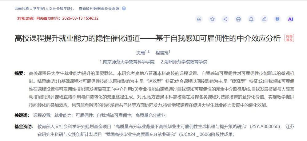 高校课程提升就业能力的隐性催化通道——基于自我感知可雇佣性的中介效应分析_沈雁.pdf