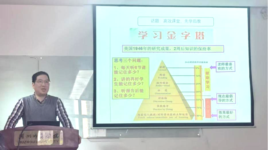 为助力师生明晰教师职业发展方向、夯实课堂教学实践能力,教育学院于3月31日举办太湖教育论坛,特邀杭州师范大学附属未来科技城学校副校长顾建伟作题为“三见三境问道方圆——探寻课堂教学的原点”的专题报告。报告由硕士生导师王罗那博士主持,学科教学(数学)方向教师李婉玥博士等以及学科教学(数学)专业教育硕士参与本次活动。