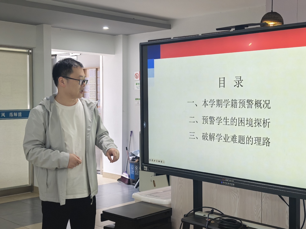分享结束后,文晓辉老师对本次交流会进行总结,他结合本次“场景育人”主题,详细讲解了本学期学院学籍预警情况,带领同学们重新学习了学籍管理、学位授予、违纪处分、学籍预警等相关规章制度,客观剖析了预警学生当前面临的学业困境,并对此提出有信心、有决心、有计划、有方法的“四有”应对策略,同时,结合大学课程考核要求传授了具体务实的学习方法。