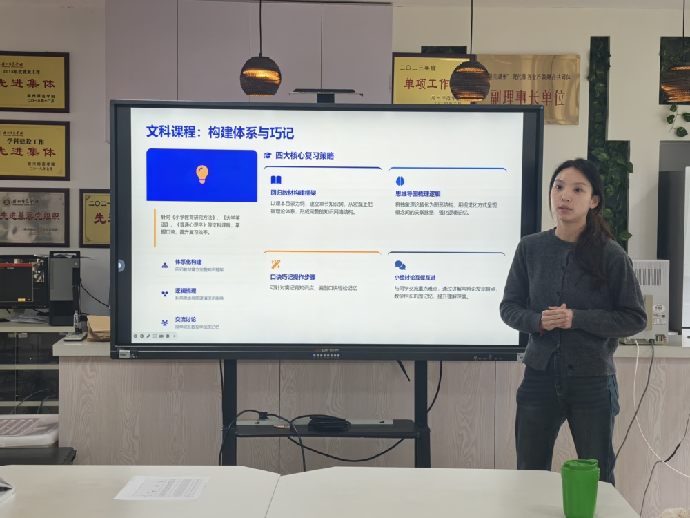 活动聚焦学业提升、经验传承、互助共进,依托朋辈分享的形式,为在场学生搭建了高效的学习交流平台。会上,优秀学生代表王倩结合自身多年学习积累和备考经验,针对不同科目的学习特点,细致分享了分类备考、重难点梳理、思维导图构建、口诀记忆及科学时间管理等实用高效的学习方法,手把手指导大家优化学习模式、规避学习误区,为学业迷茫的同学提供了清晰可行的学习思路。